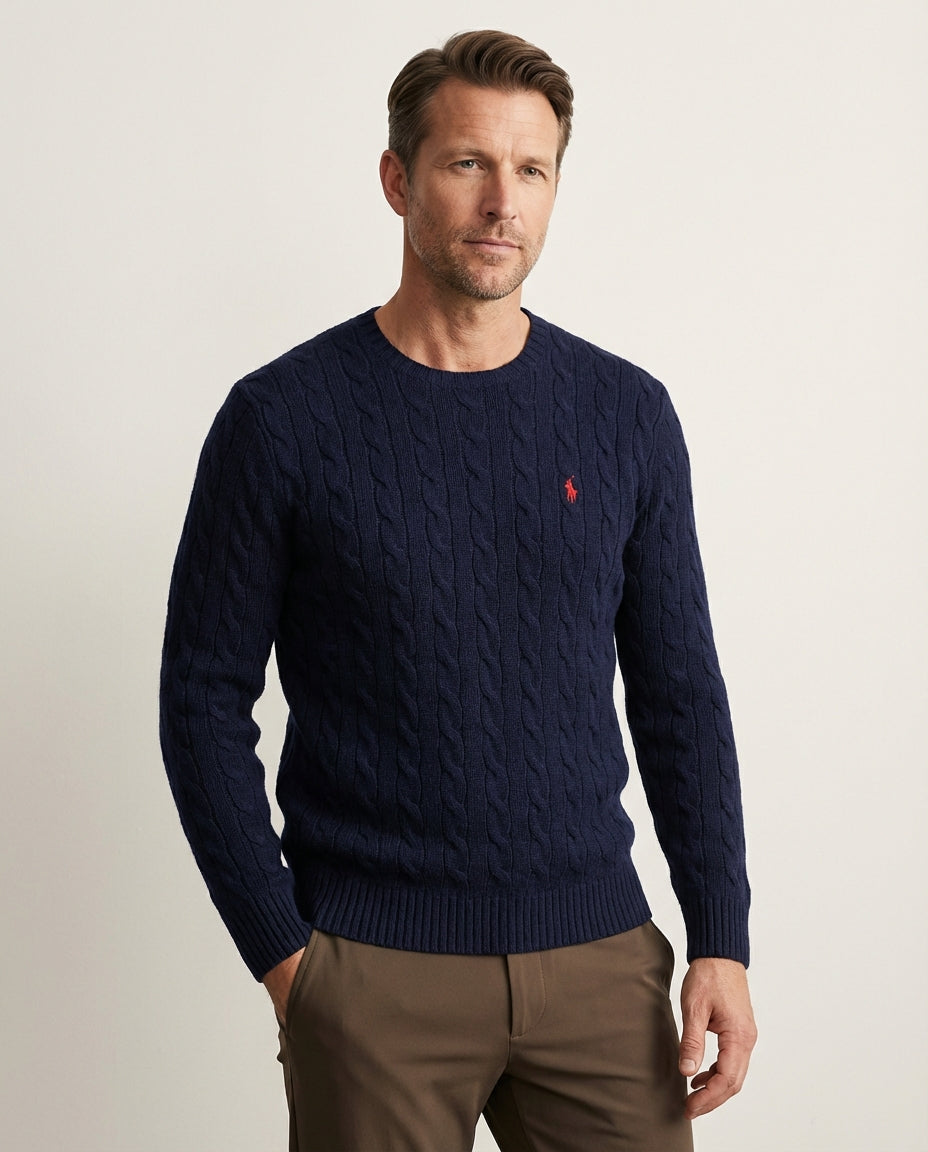 Un classico intramontabile, realizzato in cotone morbido e di alta qualità con la texture iconica a trecce di Ralph Lauren. Dotato di un collo rotondo classico e di una vestibilità comoda, perfetto per uno stile quotidiano senza sforzo.