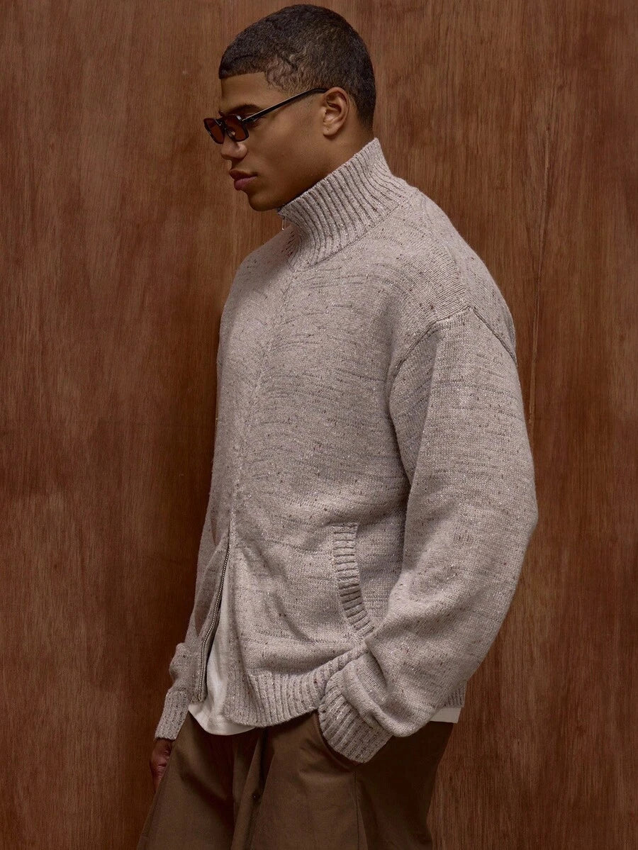 Colete com fecho e gola alta com padrão de bolinhas